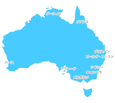 シドニー・メルボルン・キャンベラ・ブリスベン・アデレード・パース・ダーウィン・ケアンズ・ゴールドコーストなどオーストラリアのほぼ全域のエリアをカバーしています。