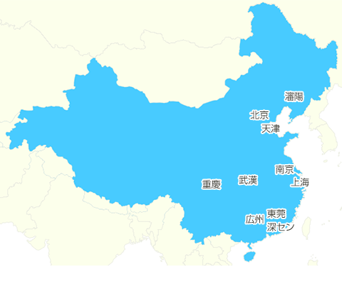 上海・北京・広州・深セン・東莞・天津・武漢・瀋陽・南京・重慶など中国のほぼ全域のエリアをカバーしています。快適なWiFi環境で中国でのインターネットをお楽しみください!