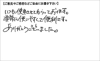 いつも使用させてもらっております。非常に使いやすくて便利です。ありがとうございました。