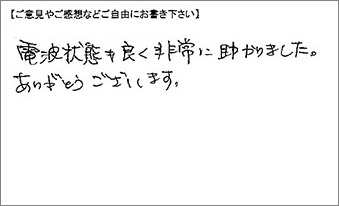 電波状態も良く非常に助かりました。ありがとうございます。
